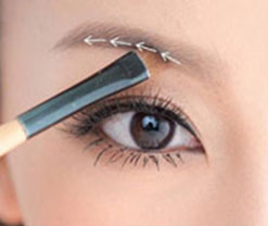 2、再蘸取深色眉粉,將眉刷豎起,描繪出眉毛下緣的輪廓,從距離眉頭1cm的位置一直拉到眉尾。