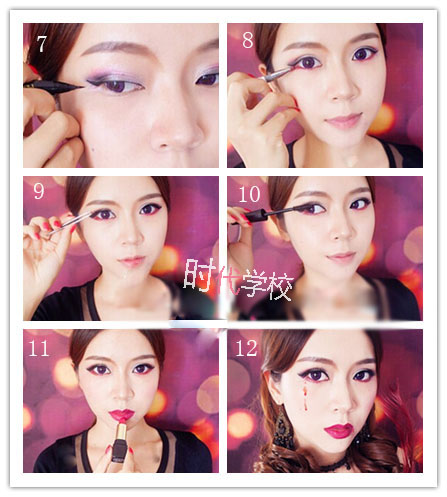 今天是萬圣節,下面時代學校教大家一款吸血鬼的畫法,這款吸血鬼妝容非常妖嬈、俊美,血色的眼淚和唇角的血色都打造出吸血鬼妝容的特色,但卻絕美。喜歡這款妝容的MM可以來試試看哦!