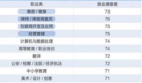 據《創業家》雜志報道,就業滿意度是就業質量評價中主觀性較強的指標。隨著生活質量的提升,人們對美容、化妝、美甲文化需求增加,行業逐漸走向成熟使相關職業待遇提高,且工作相對輕松,這些都讓其就業滿意度相對較高。