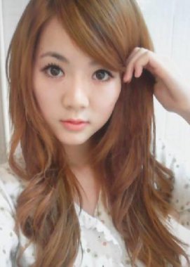 1、齊劉海長卷發,栗色的染發讓頭發看起來頗具光澤,增加頭發的厚重感,顯得臉更加精致小巧,凌亂蓬松的卷發,散發出慵懶嫵媚的小女人氣息。