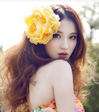 4、俏皮感的長卷發型,蓬蓬的發絲打毛效果后更顯清新可人,棕色染發很顯膚色,配上中分劉海打造無暇的瓜子臉型,碎花連衣裙,大朵的菊花點綴,艷麗迷人。