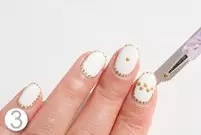 Step 2:用點鉆筆沾取金黃色珠光甲油,沿著指甲的周圍點上小波點。