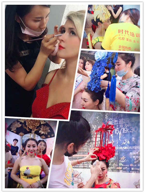 七月的夏天是酷熱的,小小的化妝室里擠滿了人,時代跟妝團隊既要克服難耐的酷暑,又要確保每一個上場的佳麗們面部儀容得當,這不是一件簡單的事情,但是時代跟妝團具有超強的化妝技藝,敬業的工作態度,以及歷經數次大型賽事不怯場的超強心理素質,贏得在場觀眾的全體贊嘆,在極其緊迫的2小時內,時代跟妝團隊依據每一個佳麗的面部特點,運用所學的全部技巧,結合極其難得的大賽實踐,讓每一位佳麗都能享受化完妝的美貌,時代跟妝團隊也在一線賽事中得到了技能上的極大提升!