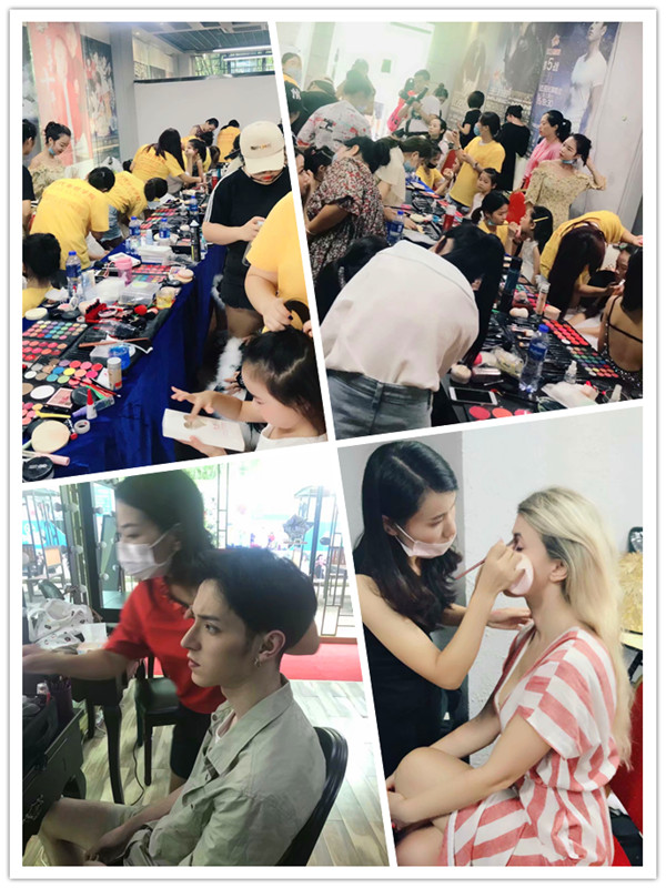 時代美妝培訓學校受到大賽舉辦方三舍文化傳媒的誠摯邀請,對于高標準的賽事要求,時代化妝班師生團隊嚴陣以待,在清晨7點已經完成在學校集合,經過簡單有序的分工后,跟妝組確立好了自身的工作任務,并于上午9點前到達賽事舉辦地,開始一天忙碌的跟妝任務。