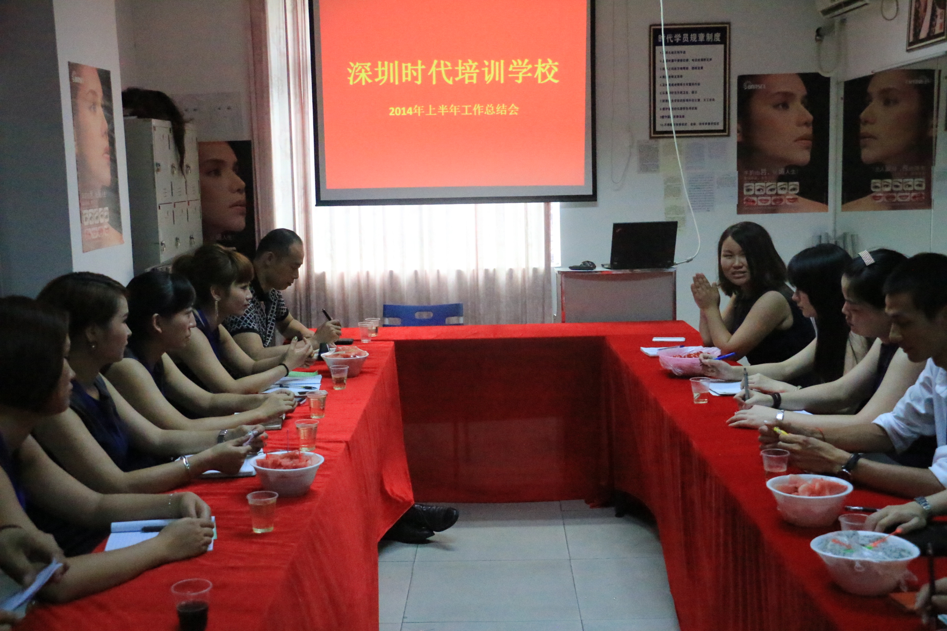 2014.7.1日時代學校年中工作總結在民治校區隆重舉行,此次會議集結了兩個校區的全體老師,會上,各位老師就半年來的工作以及未來的工作計劃,做出了一個詳細的總結,在招生大環境不景氣的、行業招生日漸競爭激勵的情況下,老師們踴躍發言,對學校以及老師提出了自己寶貴意見的建議。